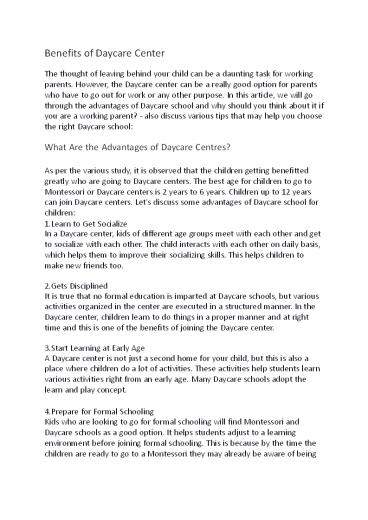 choose the right Daycare school - What Are the Advantages of Daycare Centres?