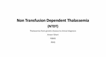 Title: Non transfusion dependent thalassemia