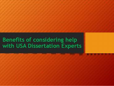 Benefits of considering help with USA Dissertation Experts PowerPoint PPT Presentation