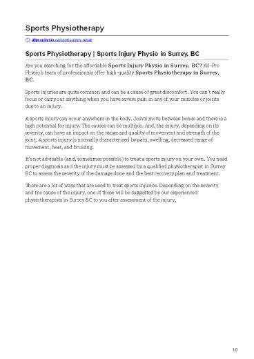Title: Surrey BC Sports Physiotherapy, Sport Injury Physio
