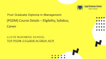 Top PGDM college in delhi NCR and Course Details PowerPoint PPT Presentation