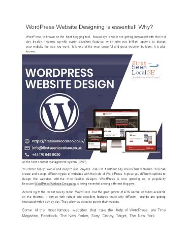 WordPress Website Designing is essential! Why? PowerPoint PPT Presentation