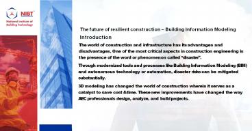 Title: The future of resilient construction – Building Information Modeling