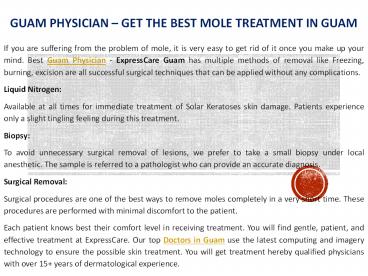 Guam Physician – Get the best Mole Treatment in Guam PowerPoint PPT Presentation