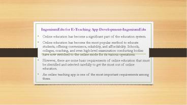 Title: IngeniumEdu for E-Teaching App Development-IngeniumEdu