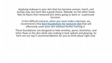 • Five best foundations for textured skin