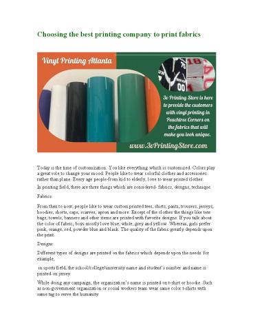 and Vinyl printing Atlanta are most popular. - In screen printing, three elements are