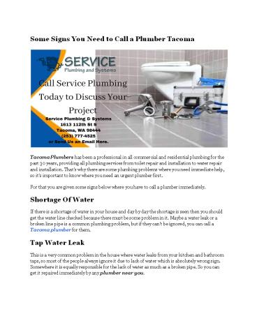 Some Signs You Need to Hire Professional plumber Tacoma WA PowerPoint PPT Presentation