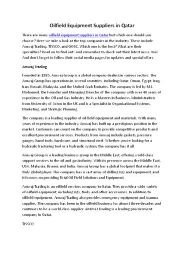 Title: Oilfield Equipment Suppliers in Qatar