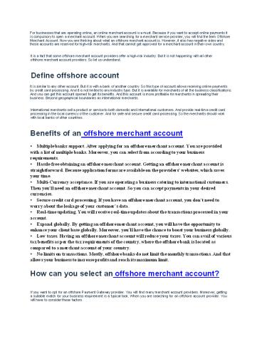 will find the term Offshore Merchant Account. Now