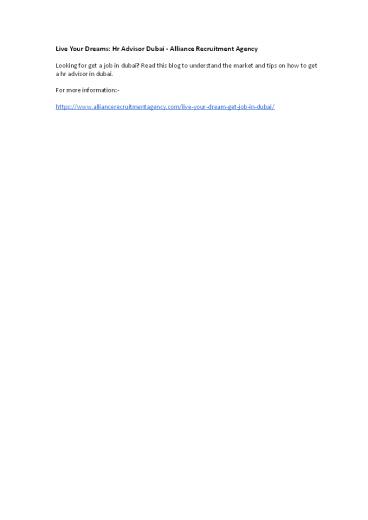 Live Your Dreams Hr Advisor Dubai - Alliance