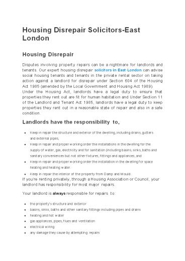 Government and Housing Act 1989). - Under the Housing Act, landlords have a legal