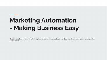 Marketing Automation - Making Business Easy PowerPoint PPT Presentation