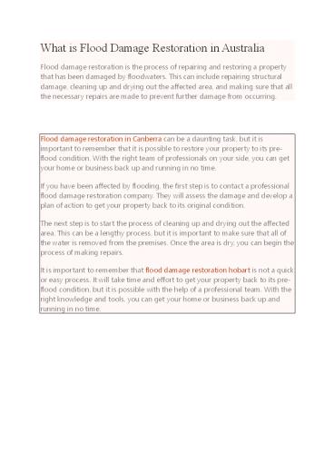What is Flood Damage Restoration in Australia PowerPoint PPT Presentation