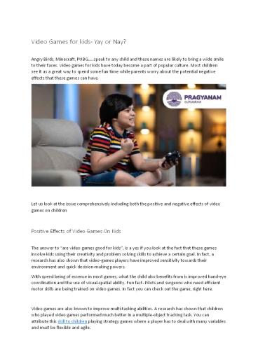 aggression in kids, it is a potent concern. - The other concern is the fact that video games