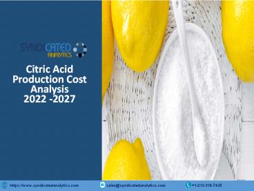 Title: Citric Acid Production Cost Analysis 2022-2027: Price Trends And Forecast, Packaging Costs, Profit Margins, Land And Construction Costs, Raw Materials Costs 2027