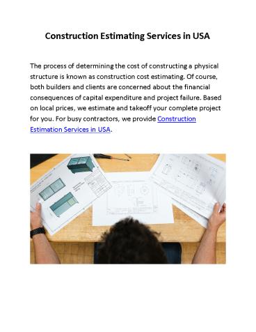 Construction Estimating Services in USA PowerPoint PPT Presentation