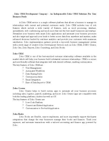 • . Zoho CRM Development Company - An Indispensable