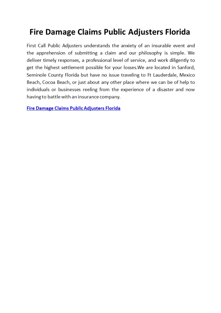 Fire Damage Claims Public Adjusters Florida PowerPoint PPT Presentation