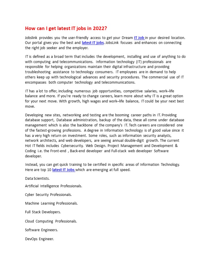 Jobs Latest IT Jobs , Fresher/Experienced who