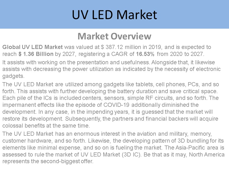 of UV LED Market (3D IC). Be that as it may,