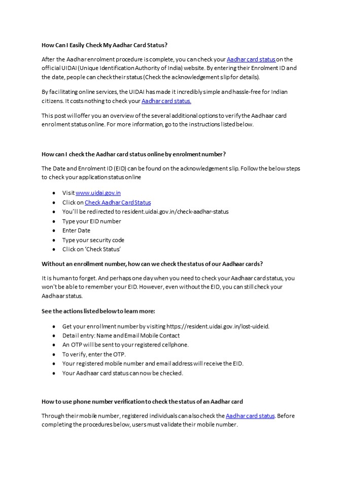 - How to verify the status of an Aadhar card by