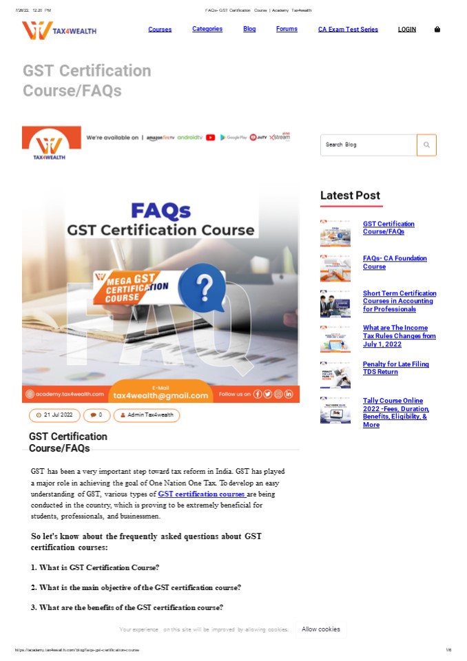 Title: FAQs- GST Certification Course | Academy Tax4wealth