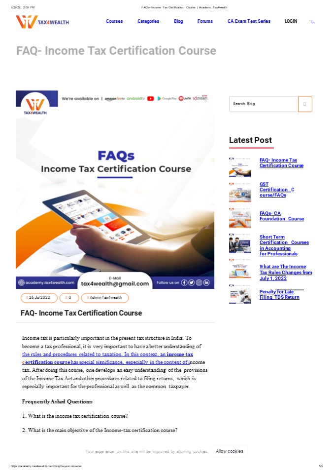 Title: FAQs- Income Tax Certification Course | Academy Tax4wealth