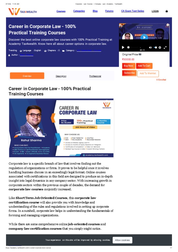 Title: job oriented courses in Corporate Law Courses | Company Law | Academy Tax4wealth