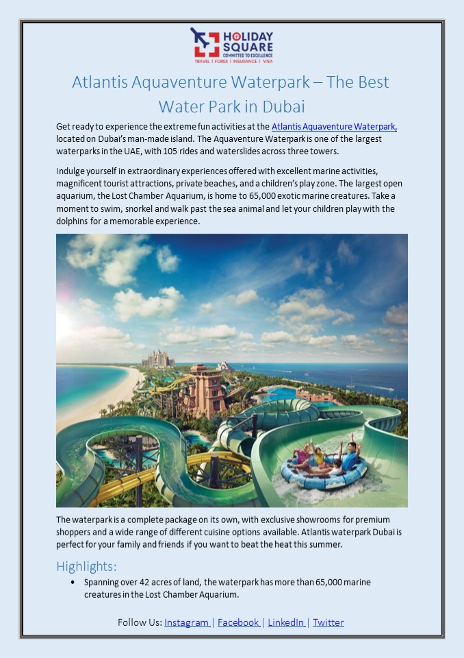 either online or at the ticket counters. - Ticket Prices for Atlantis Waterpark Dubai are