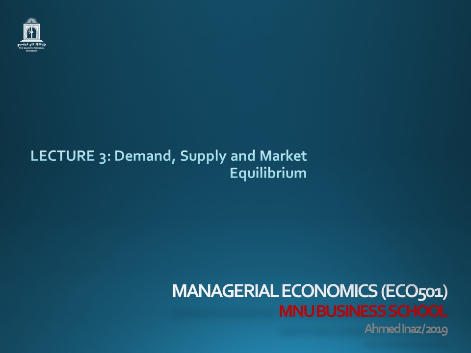 - LECTURE 3 Demand, Supply and Market Equilibrium