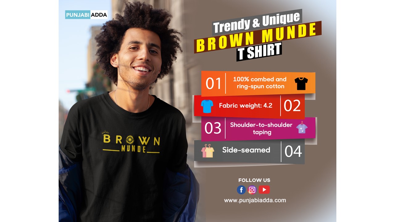 Title: Trendy & Classy Brown Munde T Shirt – Punjabi Adda