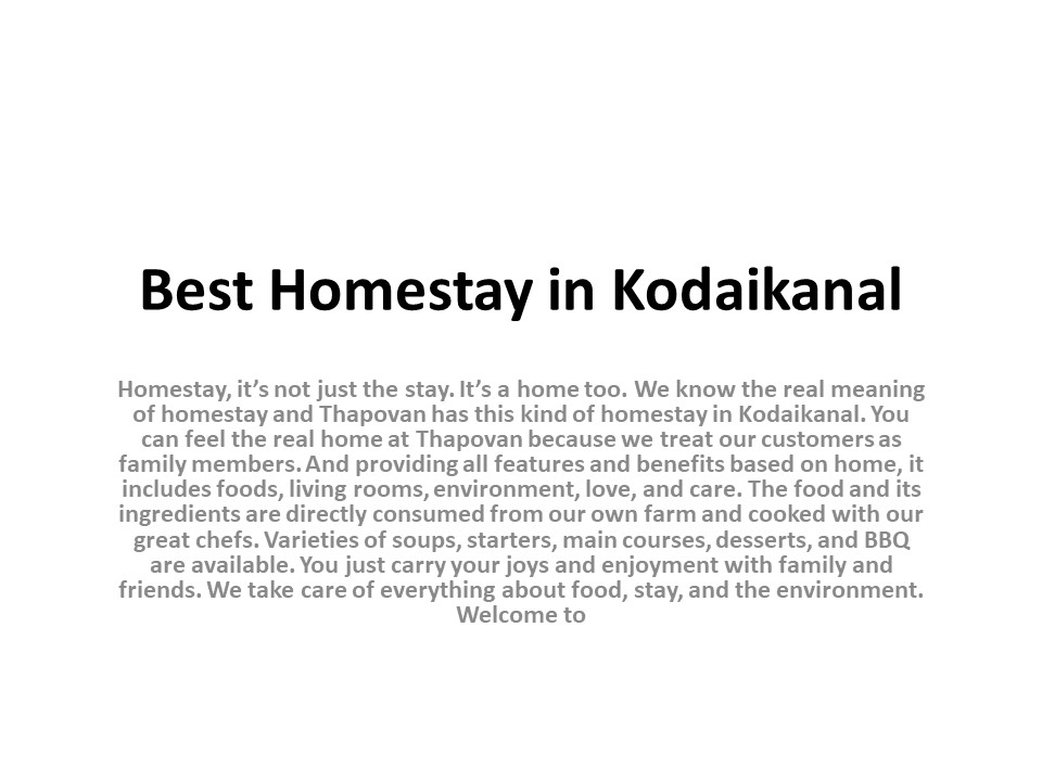 Best Homestay in Kodaikanal Thapovan PowerPoint PPT Presentation