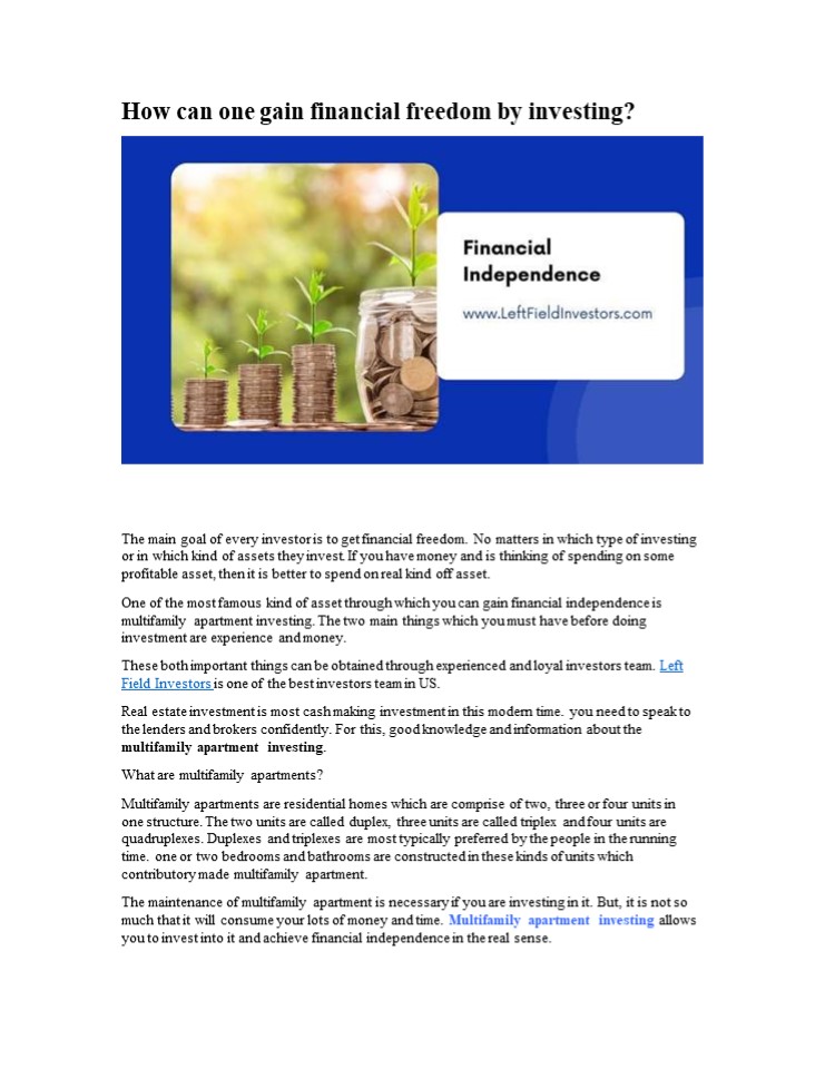 financial independence is multifamily apartment