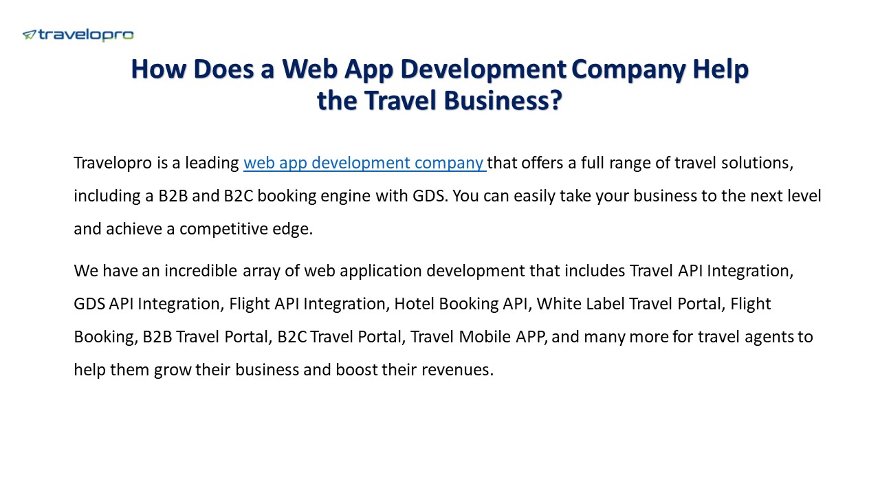 - Travelopro is a leading web app development