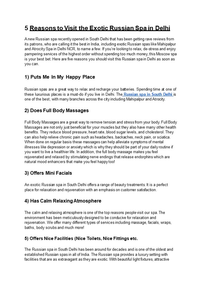 5 Reasons to Visit the Exotic Russian Spa in Delhi