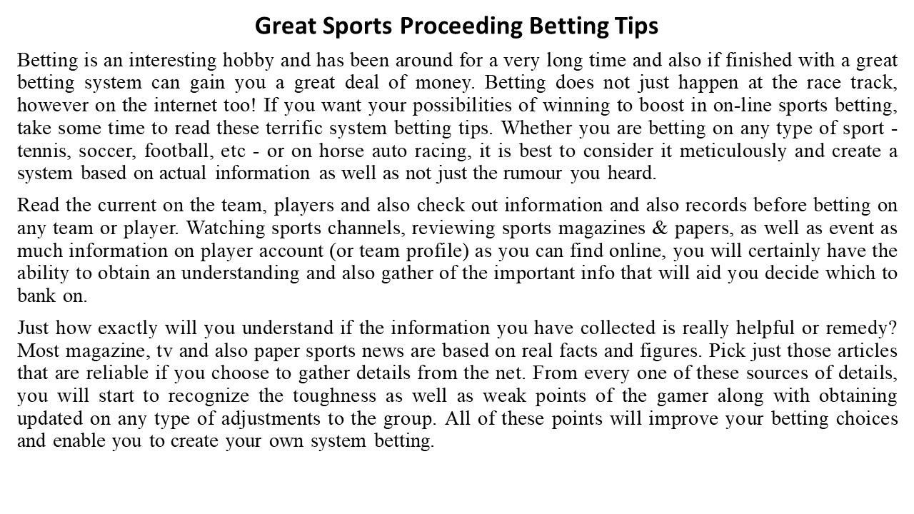 Great Sports Proceeding Betting Tips PowerPoint PPT Presentation