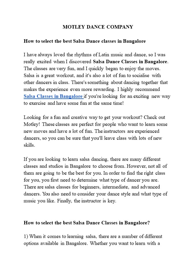 Title: Best Salsa Classes in Bangalore