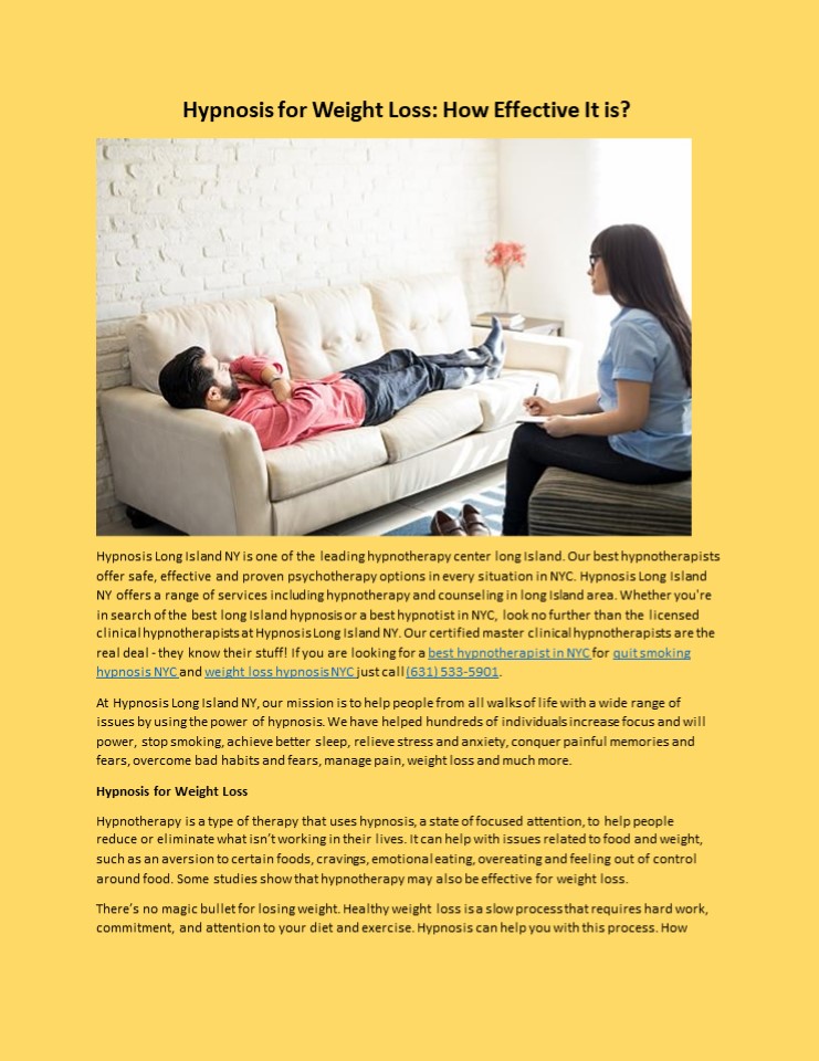 more. Hypnosis for Weight Loss Hypnotherapy is a