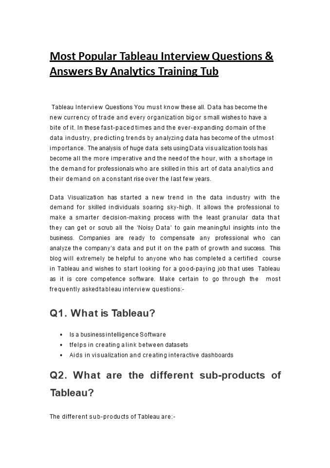 - Tableau Interview Questions You must know these