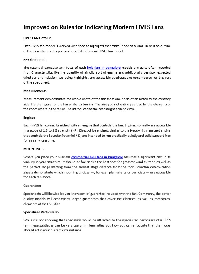 Title: Improved on Rules for Indicating Modern HVLS Fans