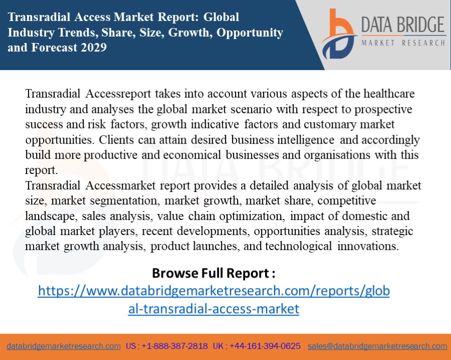 of 9.3 in the forecast period of 2022 to 2029. - The report analyses key Transradial Accessmarket