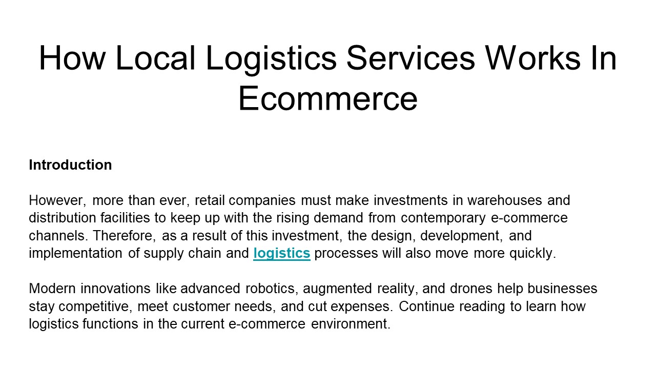 Title: How Local Logistics Services Works In Ecommerce