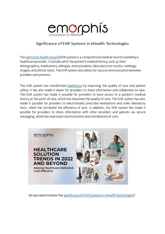 Significance of EHR Systems in eHealth Technologies PowerPoint PPT Presentation