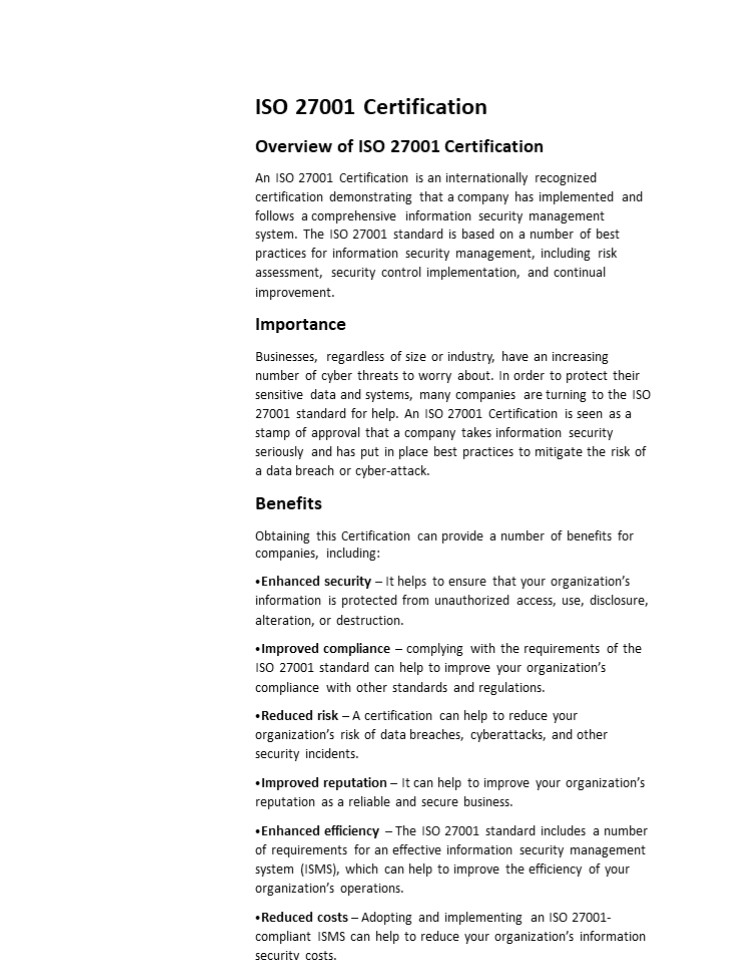 secure business. - Enhanced efficiency The ISO 27001 standard