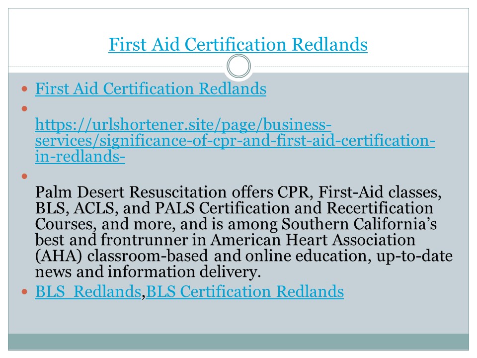 First Aid Certification Redlands PowerPoint PPT Presentation