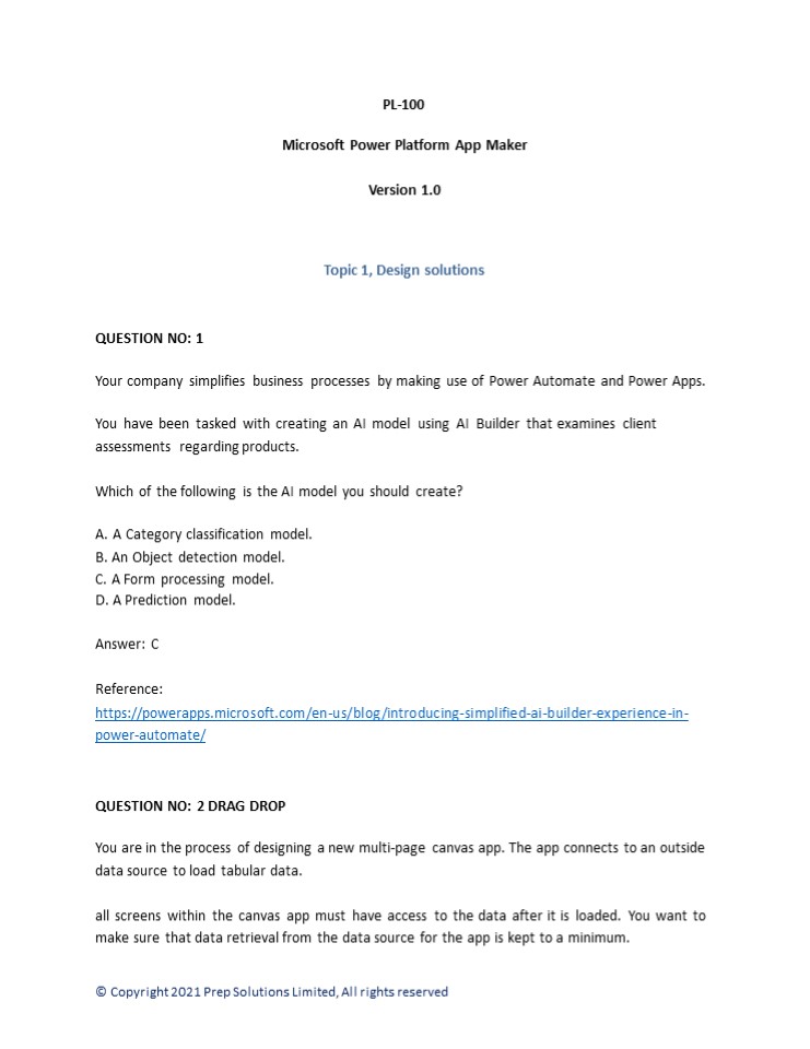 making use of Power Automate and Power Apps. - You have been tasked with creating an AI model