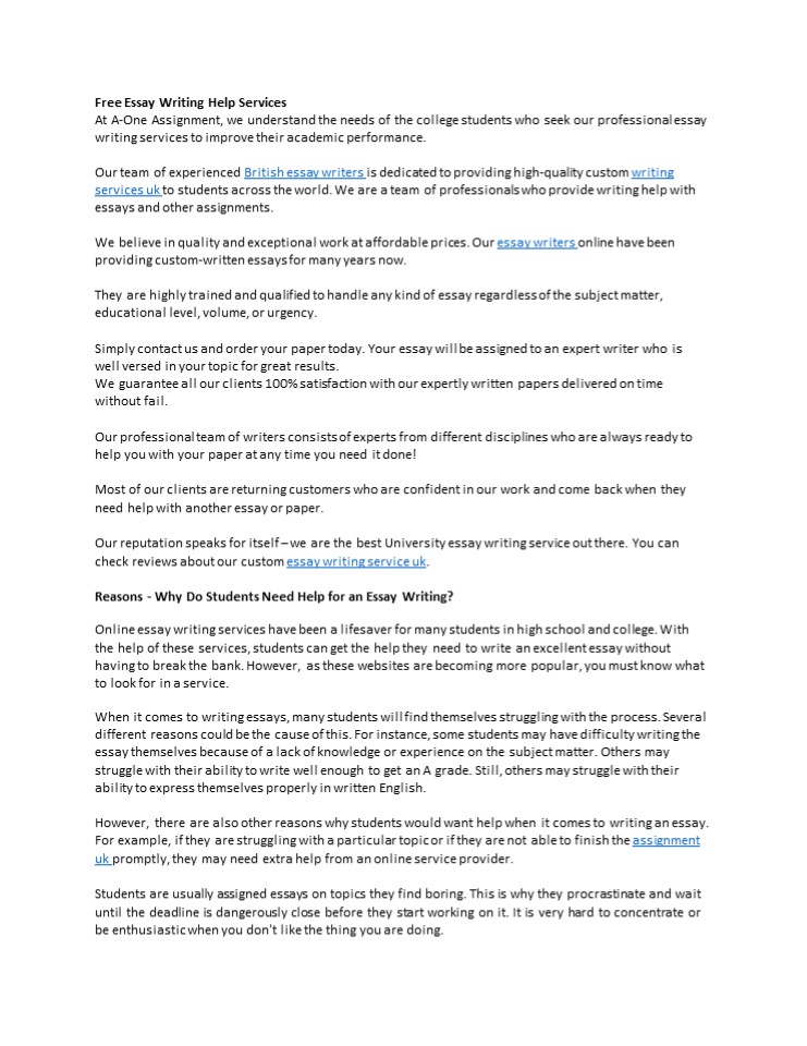 1Free Essay Writing Help Services At A-One