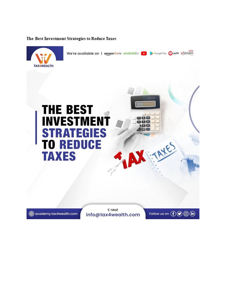 Title: The Best Investment Strategies to Reduce Taxes | Academy Tax4wealth