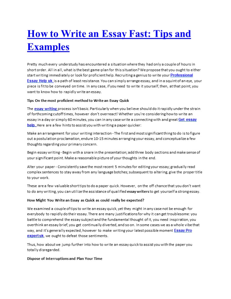 an essay quick. Be that as it may, prior to